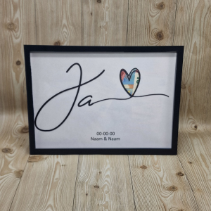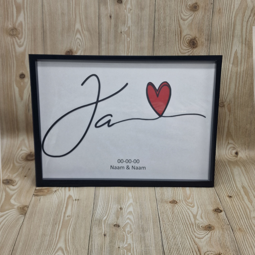 Maak jouw keuze en verras het bruidspaar met deze prachtige gepersonaliseerde "Ja"-lijst. Een blijvende herinnering aan hun liefde en speciale dag! đź’–